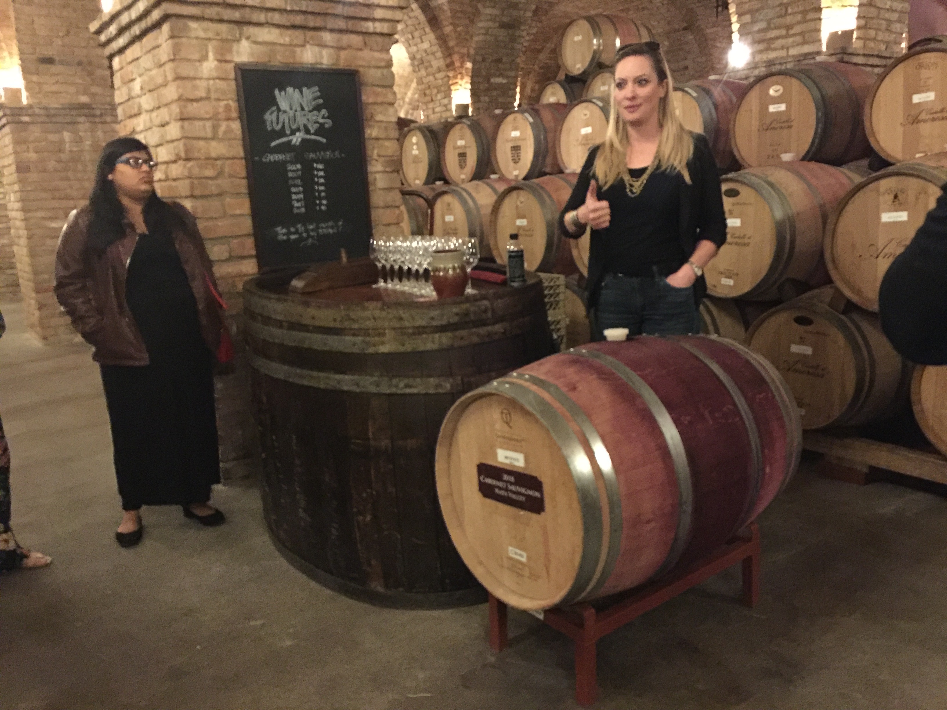 予約していたワイナリーのツアー(約7千円)は、10名程度のツアー客に1の女性がが1時間程度で各設備、Fermenter(発酵タンク)などの設備、地下の樽保管庫の説明、ぶどうの試食と樽ワインの試飲をエスコートしてくれる。