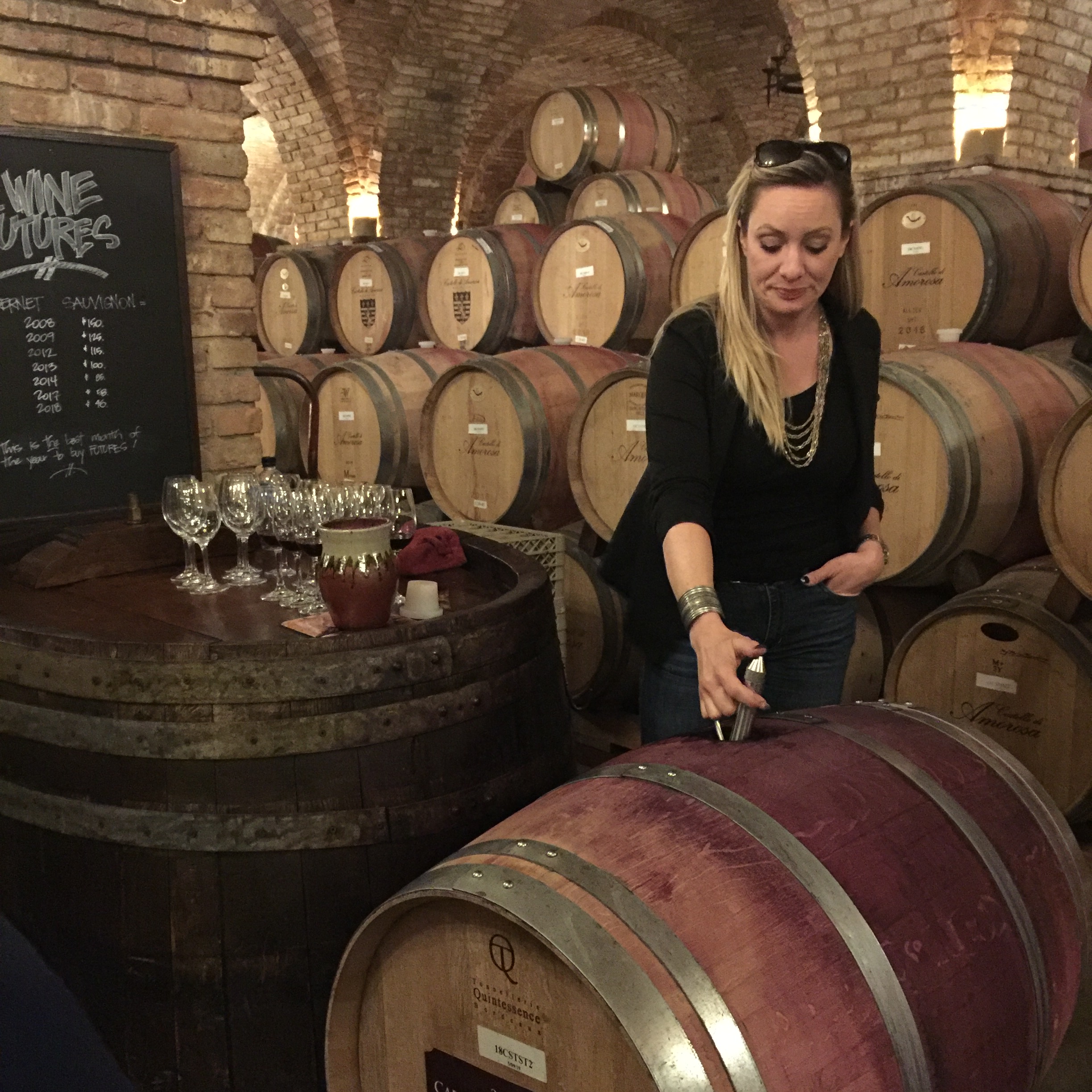 貯蔵中のワインを試飲