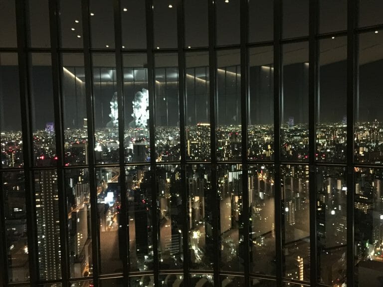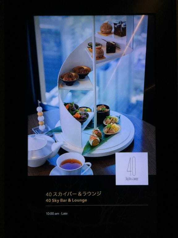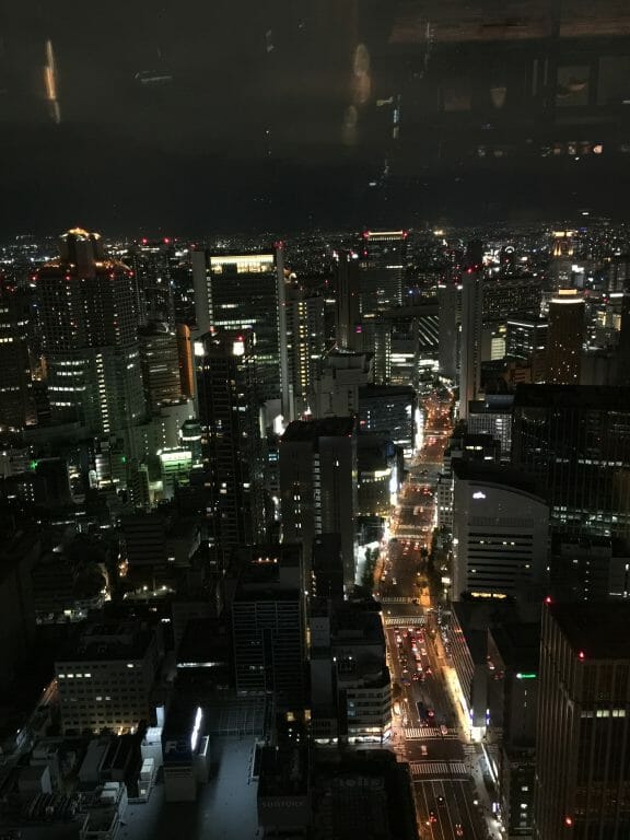 40Fはホテルのロビーになっています。エレベータで一気に上がれば、ガラス張りの大阪の街を望めますよ。夜は夜景の灯りで良いですが、昼は生駒山を望むことができてこれも素晴らしい景色です。