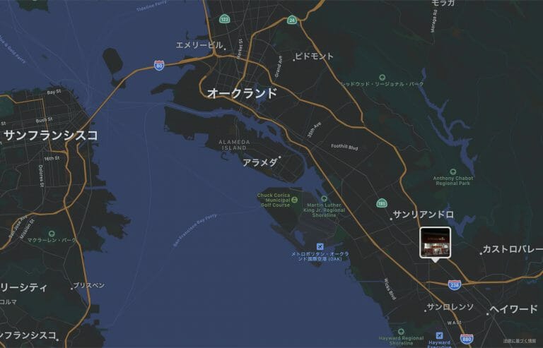 今回、おじゃましたお店は、Emeryvilleから少し離れたサンリアンドロとカストロバレーの間(下の地図)にあるショッピング街にある「Halloween City」でした。