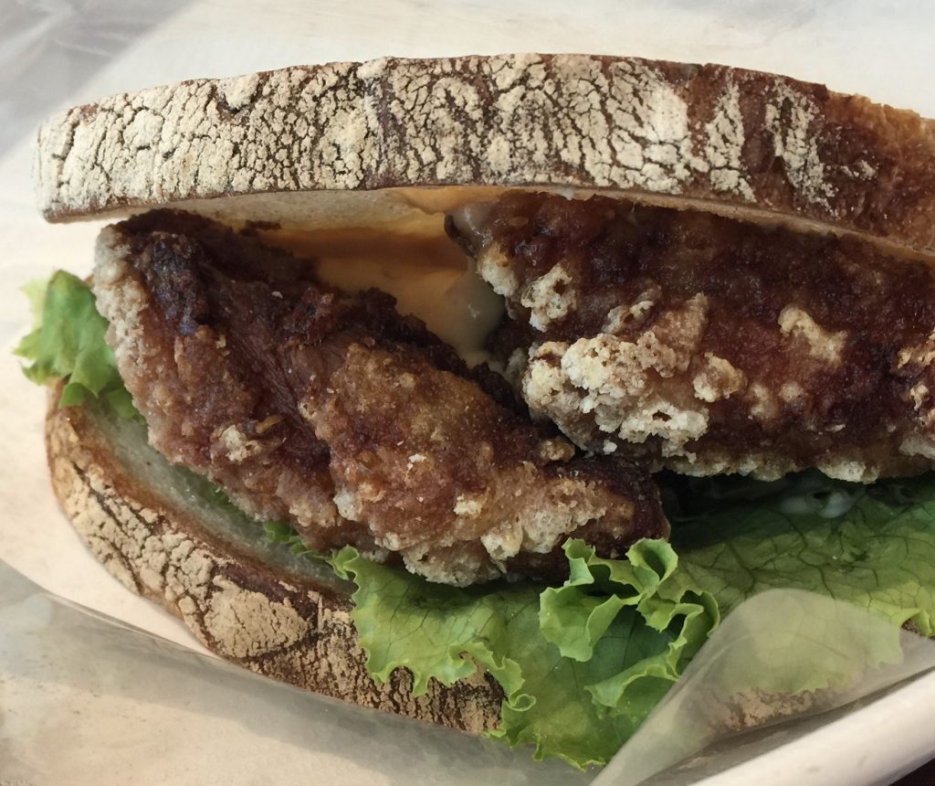 2021/09/23, 大阪の江坂、御堂筋線沿い「リトルマーメイド」というパイ屋さんでパンを食した。イギリスパンのタマゴサンド、たつたあげサンド、キーマカレーパン。