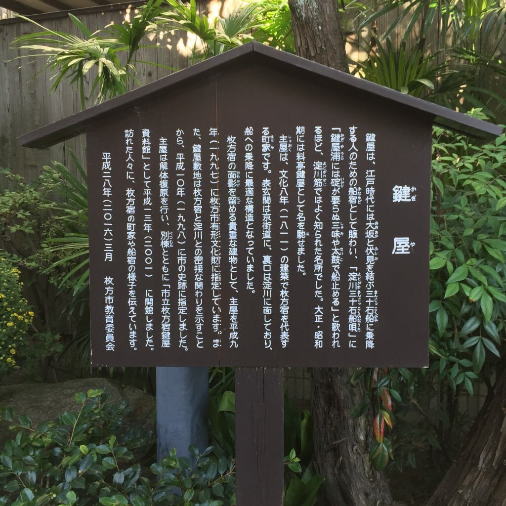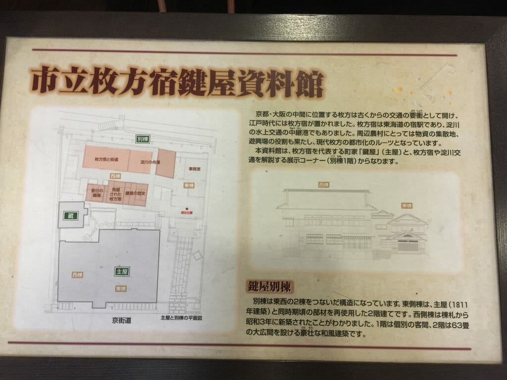 東海道の延長部として整備された4つの京街道の1つが枚方宿で、淀川往来の船を持つことができる宿を営んでいたのが、鍵屋です。