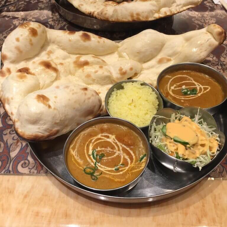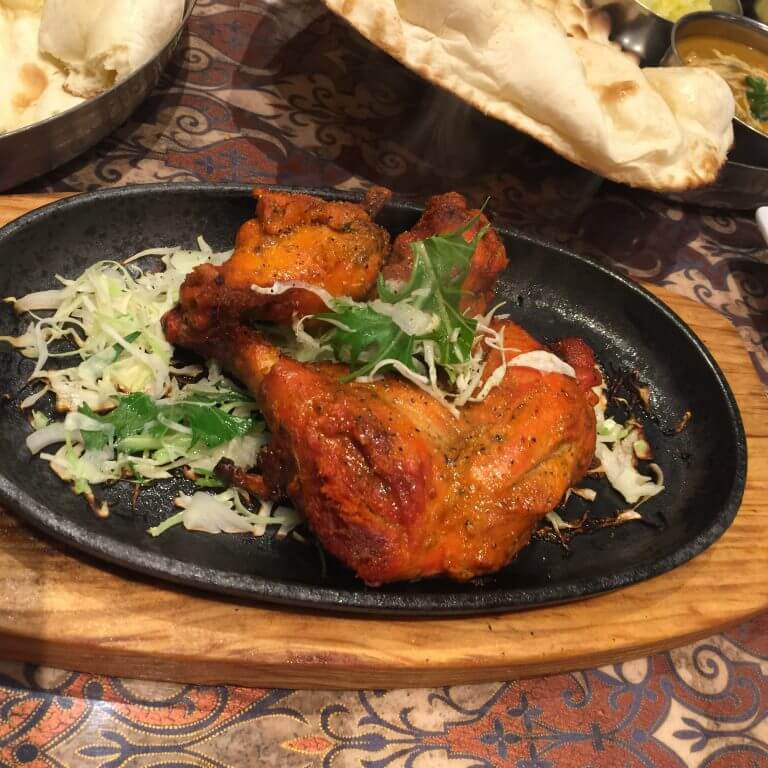 ナン、カレーとタンドリーチキン
