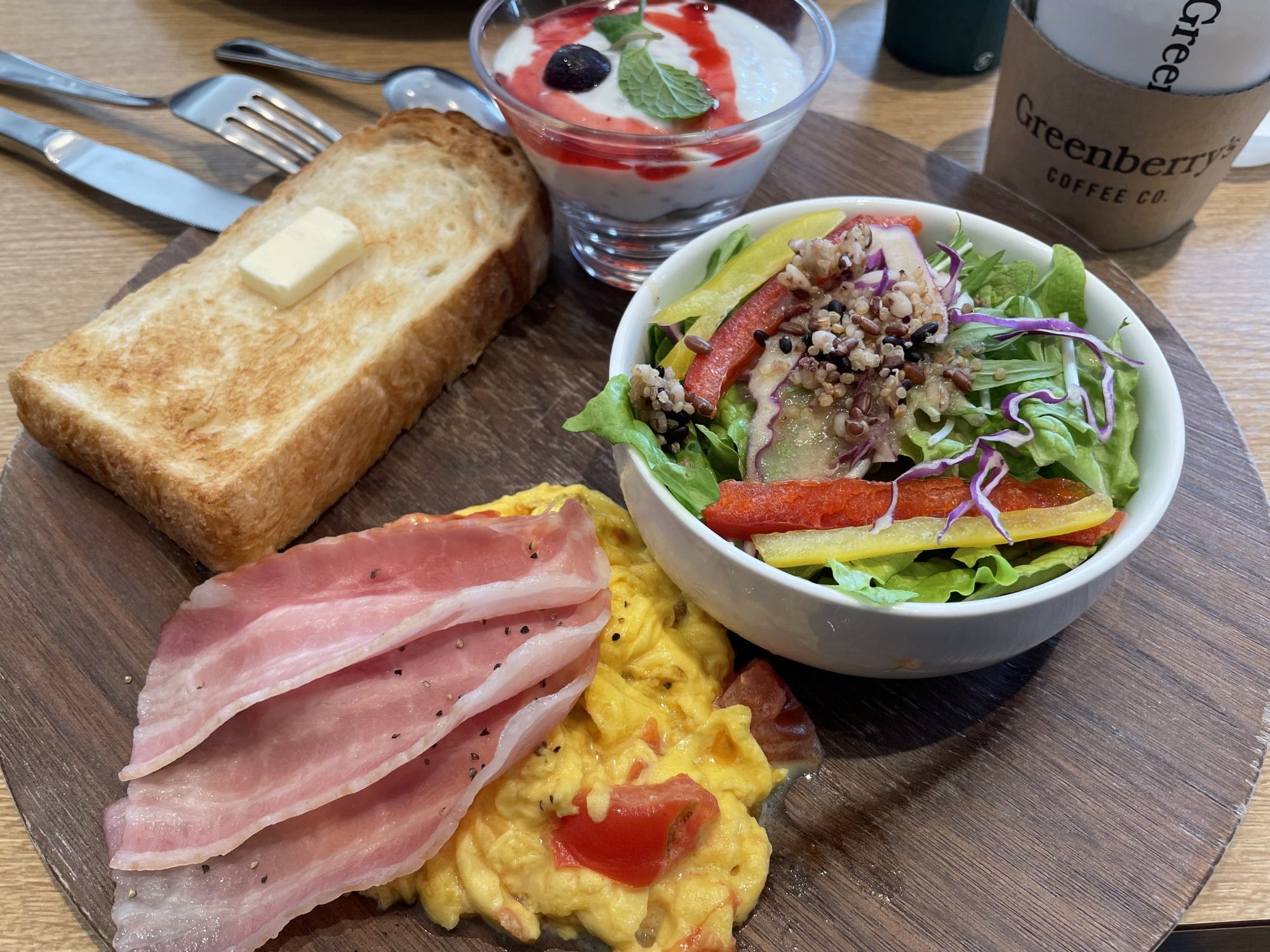 ヨーグルトには、五穀などの穀物が入っていたり、サラダにもアワやヒエのような体に良さそうな穀物が入っていてエルシー。